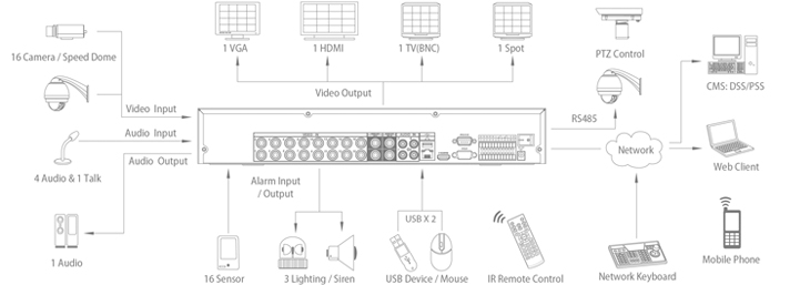 - Built-in web server, multi-DVR client, DMSS & CMS