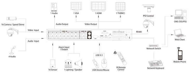 - Built-in web server, CMS(DSS/PSS) & DMSS
