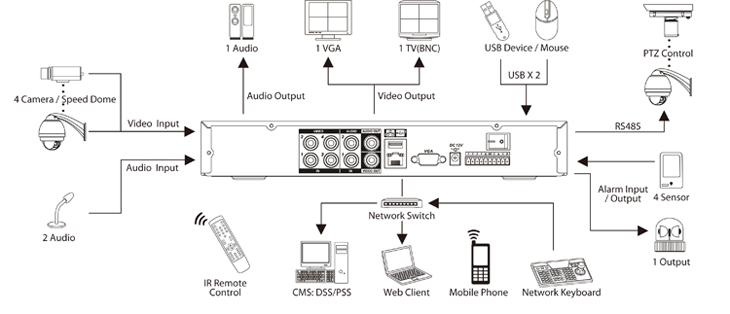 - Alarm triggering screen tips, buzzer, PTZ, e-mail, FTP upload: HD-DVR0404LE-AS