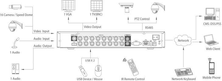 - Built-in web server, multi-DVR client, DMSS & CMS